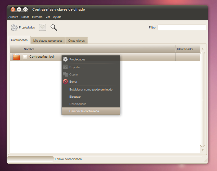 1. Ingresa al menú: ‘Aplicaciones > Accesorios > Contraseñas y claves de cifrado’ se abrirá la siguiente ventana: